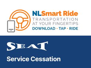 Smart Ride Update.  The original plan to suspend Smart Ride on July 1, has been delayed to August 1, 2025.  The Board of Directors is reviewing options for continuing the service beyond August 1 at a Work Session on June 24, 2025.  Smart Ride was funded with special one-time Federal COVID grants, and those grants have expired. SEAT continues to provide fixed route bus service and ADA paratransit service (for those individuals with a disability who qualify) throughout New London.  Any pre-paid fares for Smart Ride are accepted on all SEAT buses, and staff is ready to assist customers in transitioning to that service. In addition, ECTC (Eastern CT Transportation Consortium) may have transportation options for New London residents. www.seatbus.com 860-886-2631   ECTC 860-848-5910 Home