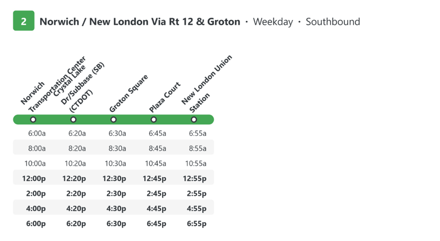 ROUTE 2 – NORWICH/NEW LONDON VIA RT 12 & GROTON